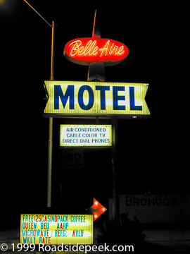 Here's a neon shot of the Belle Aire Motel, located