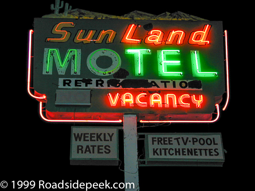 to weekly rates to survive. Check out the neon sign on this one. The Sun Land Motel opened in 1949 along the Miracle Mile.
