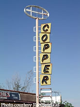 At left is the marquee for the Copper Motel in Superior,