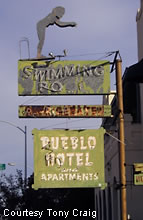 the Southwest. The Pueblo sign was first established in 1948. The hotel has been closed since 1984.