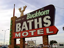 Here's a nice neon sign for the Buckhorn Baths Motel,