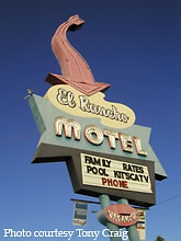 This unique sign for the El Rancho Motel in Mesa still