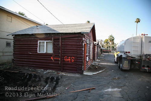 The Log Cabin Motel, which opened in 1939 as the Log Cabin Auto Court, was one of the last survivors of the old motor courts as the city began renewal projects. The time finally came for this Phoenix landmark to disappear and the motel was demolished in July 2010, after 71 years in business. According to the Phoenix New Times, the Log Cabin was arguably the most iconic motel along the street.
