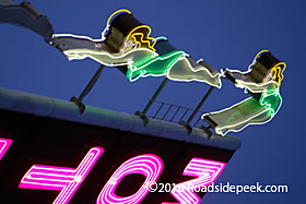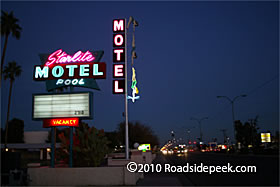 Unfortunately, the Starlite Motel lost its animated neon diver sign in a thunderstorm on October 5, 2010. According to the Arizona Republic, the 50 year old sign was destroyed when a powerful wind gust sheared off a metal pole support.