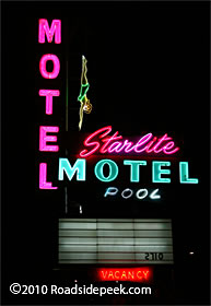 UPDATE 11/13 : The Starlite Motel sign was restored and reestablished back to its familiar location in the parking lot. Photos to be added soon. The restoration and replication of the sign cost $100,000. It was good news to hear that that sign is now back. 11-13
