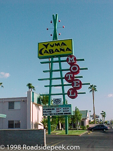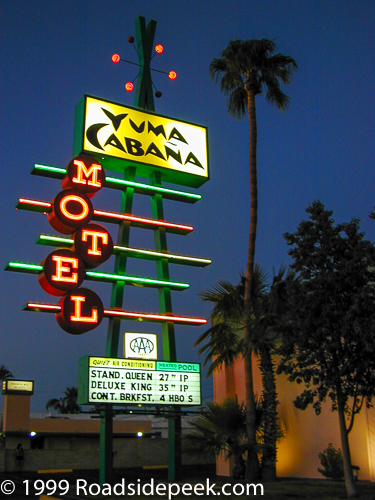 Yuma, Arizona - The Yuma Cabana Motel is a very well known location in Yuma due to the huge sign out front. The neon lettering and flashing lights are a can't miss destination for travelers to Yuma.