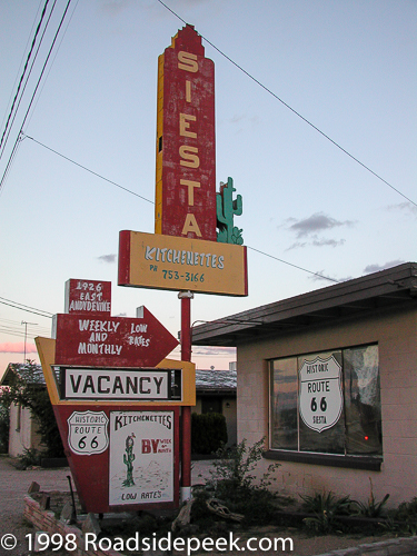 Travel through Kingman, AZ and you won't be able to miss the Siesta Motel. The sign itself is really eye catching with the various colors on the sign. The motel itself has an adobe look.. The Sierra Motel was built in 1929.