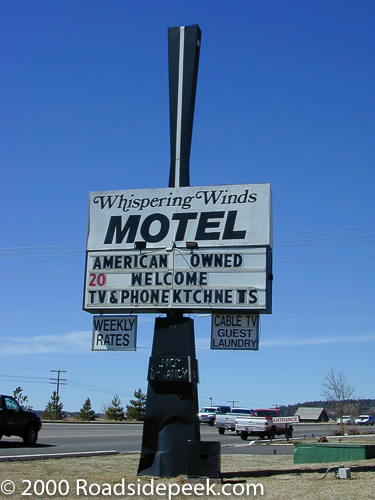 The Whispering Winds Motel is a mid-century modern motel that features both a cool sign and modern looking motel. Back in 2000, the motel sign proudly proclaimed that it was American owned and offered TV, phone, and kitchens to its guests. The motel looked to be in decent shape from the outside, though I never stayed there. The motel opened in 1964.