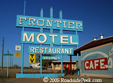 UPDATE 04/17 : The Frontier Motel sign is looking a bit worn lately. Not sure if the motel is still open for business based upon what the place looked like the past few times I passed by. 04-17