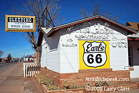 The Earl's 66 Motel is an old Route 66 motel located in Winslow, AZ. The sign says "Sleeping on the corner in Winslow, Arizona" as a play off of the famous corner made famous by the Eagles in the 1970's.