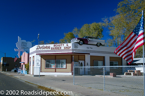 Check out the DeSoto's Salon on old historic Route 66 in Ash Fork. The salon comes complete with a vintage car on the roof. The business, once called the DeSoto's Beauty and Barber Shop has been closed. 03-19