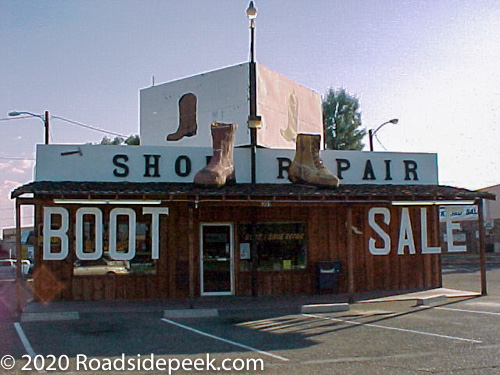 Here is what appears to be an old Shoe Repair business in Yuma, Arizona. The place also appears to sell boots. Note sure if this shoe repair is still in business as this photo was taken in 1998.