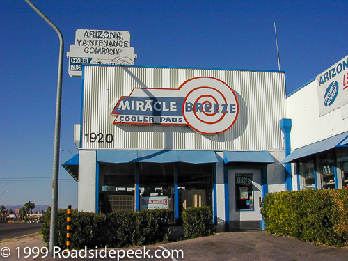 Here is the sign and building for Miracle Breeze, self proclaimed home of the World's Best Cooler Pads. Miracle Breeze is family owned and operated and is the oldest manufacturer of cooler pads in Tucson. The neon sign has been lighting up the street since 1942. 06-23