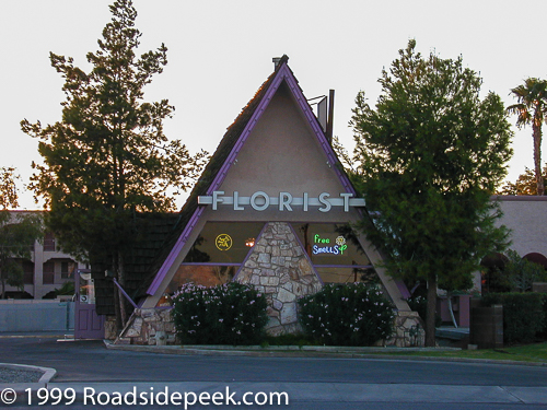 Yuma is home to this Florist situated in this A-frame building. The lettering on the building contrasts well with the building that also has flagcrete. 06-23