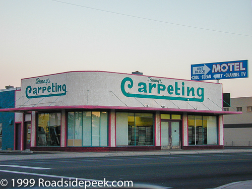 Check out this building for Johnny's Carpeting. The building looks like a streamnline style. The lettering for carpeting is a flashback to the 70's. The business has been at this location since 1993. 06-23