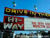UPDATE 07/06 : This marquee was the last remnant of this old drive-in until it too was sent up to the big signpost in the sky in late 2005. 07-07