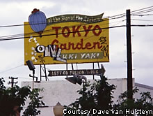 burger or dog (hot)? Then follow this sign to Tokyo Garden. Can't