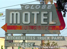 The Globe Motel still features a marquee that points