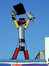 Check out this little character up on top of the roof of this Bakersfield, CA tire store. See this and more at Roadside Peek'sRoadside Characters Central California.