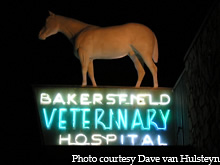 Veterinary Hospital lights up the roadside enough to catch the attention