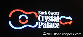 This sign for the Buck Owen's Crystal Palace towers high above Rosedale Hwy and Buck Owens Blvd in Bakersfield. Also conspicuously next to the present day Bakersfield Arch, the Crystal Palace is a museum, theatre, and restaurant featuring a country music theme befitting the legendary Buck Owens. 12-08