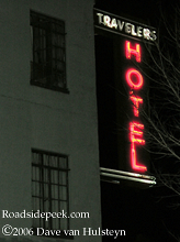 The Travelers Hotel in Salinas features a neon sign that lights the way into this old historic hotel. 02-06