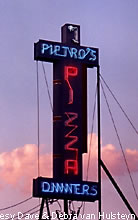 Check out the still intact neon sign for Pietro's Pizza.