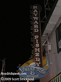The Hayward Fishery features a real eye catching sign. Unfortunately, word is that the business is now closed and hence the sign has gone dark. 10-09