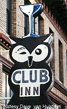 "Who" goes to the Club Inn in Stockton. OK. Well, anyways. Here's the Club Inn marquee with a winking owl at this Stockton tavern. 03-06