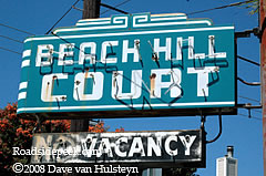 This old marquee for the Beach Hill Court shows off the sun that Santa Cruz is known for. 09-08