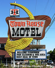 The Town House Motel off of Highway 395 in Bishop features a marquee with a big ol' yellow swooping arrow. 09-08