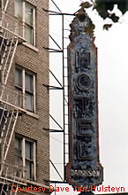 old marquee in good shape. The hotel dates back to 1924 when it was built by G. Van Cleemput as a potential addition to the nearby Hotel Willits. The sign appears to date back to the mid-1900's.