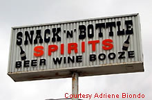 Here's a backlit plastic sign for the Snack n' Bottle in Seaside, CA.
