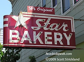 Here's the famous Star Bakery marquee in San Francisco. The Star Bakery was a San Francisco landmark bakery for almost 100 years. Unfortunately, the bakery eventually failed and closed down in May 1999.