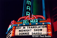 Here's the famous Del Mar Theatre from downtown Santa Cruz, CA. The Del Mar opened in 1936 and was an area landmark until being suddenly shut down in November 1999. Fortunately, due to the effort of the community, preservation groups, and the redevelopment agency, among others, the Del Mar was reopened in a new grand opening on March 2, 2001. 02-07