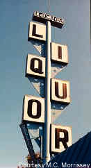 A googie looking marquee adorns the Leucadia Liquor store in none
