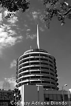 The Capitol Records building in Hollywood appropriately
