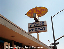 Bernardino. This bright red arrow points the way into the auto service