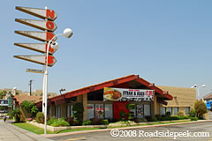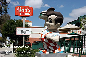 Here's the Bob's Big Boy in Glendale, CA with the familiar Big Boy holding the double deck hamburger greeting visitors passing by. Word is this Bob's location is now closed. 12-10