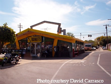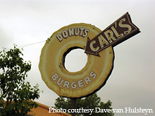 Carl's Donuts in Pomona is an example of a neighborhood roadside donut stand that stands to bring in carloads of hungry donut desirers with its marquee.