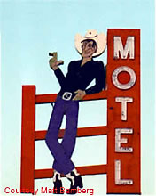 Looking for a rather friendly cowboy on a motel marquee? Well, don't