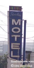 This marquee is one of the signs at the Paradise Motel in Los Angeles. This motel glows in purple brilliance at night. 09-06