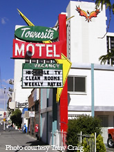 Check out this large boomerang arrow on the sign for the Townsite Motel in Reno.