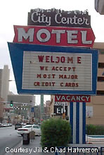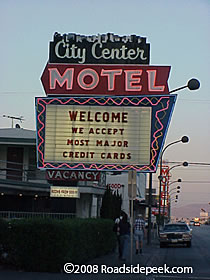 UPDATE 07/06 : The City Center Motel was replaced with a Day's Inn a couple of years ago. The sign is in now in the sign boneyard. 07-06