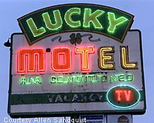 The Lucky Motel in Las Vegas still lights up the sky. And yes,