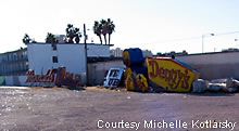 In the front is a discarded sign from the El Portal in downtown. What's