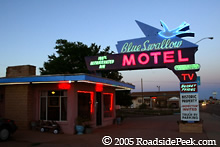 The Blue Swallow Motel in Tucumcari, NM is one of Route 66's greatest treasures. Built in 1939 by W.A. Huggins, the Blue Swallow features separate garages as was common with many of the motels from the same era. Lillian Redman is the most famous owner running the motel for 40 years afterreceiving the motel as a gift from her new to be husband. Lillian Redman passed away on February 21, 1999.