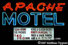 The Apache Motel in the Route 66 town of Tucumcari, NM features full working neon. 01-07