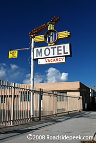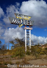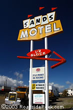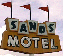 (Near right) A close-up of the Sands Motel marquee with its three red