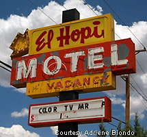 along the main drag in Gallup, NM. Especially with the snow on the roof, the Road Runner Motel shows off its Route 66 roots.